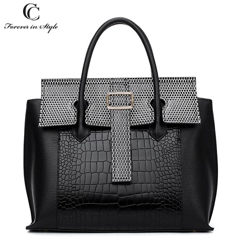 Сумка выполнена из сочетаний нескольких видов экокожи: в выделкой под змеиную кожу, под кожу крокодила и телячью кожу.