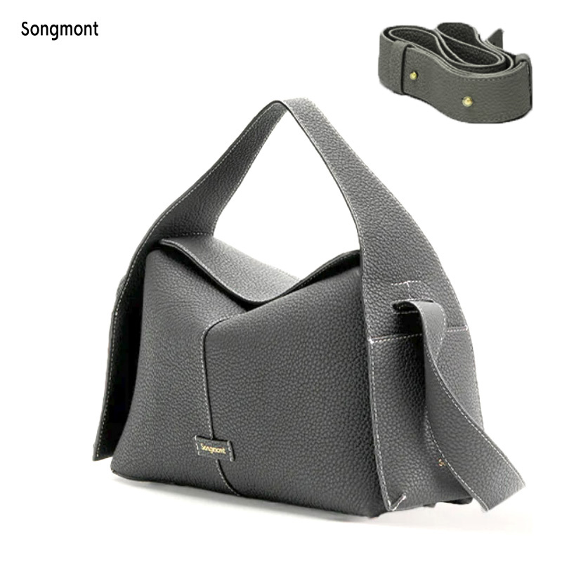 Ручка средней длины и съёмный регулируемый ремень позволяют носить сумку в руке, на плече или через плечо. Минималистичная золотая надпись бренда на боку добавляет утончённости, не перегружая образ.