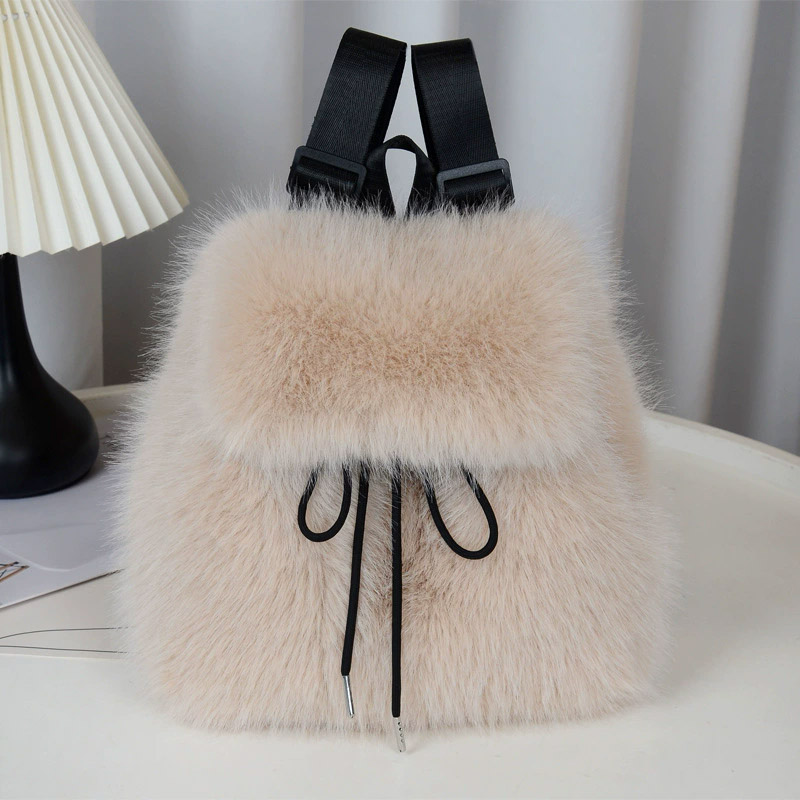 Рюкзак из мягкого пушистого материала ( искусственный мех)  с клапаном и шнуровкой на завязках.