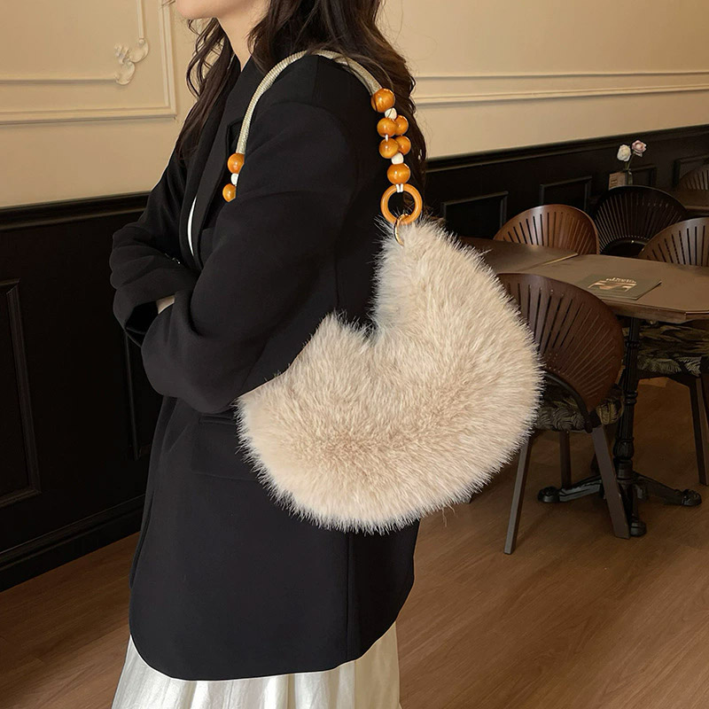 Меховая сумка с мягкой фактурой и оригинальной ручкой из бусин.