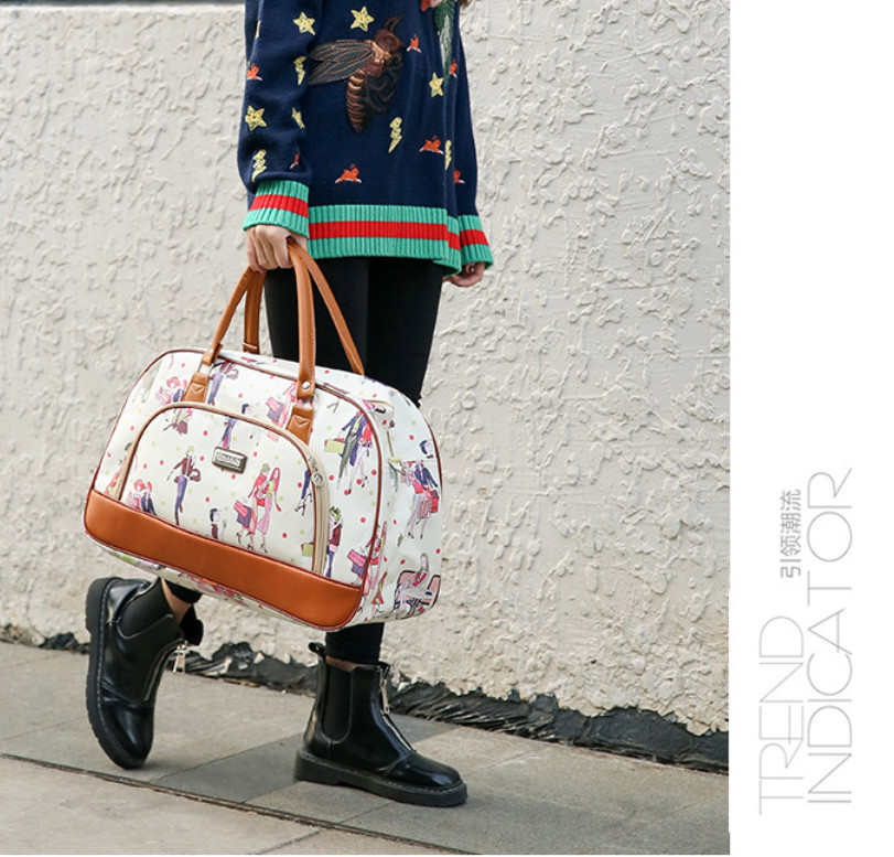 Стильная дорожная сумка из прочной экокожи с ярким декоративным принтом.