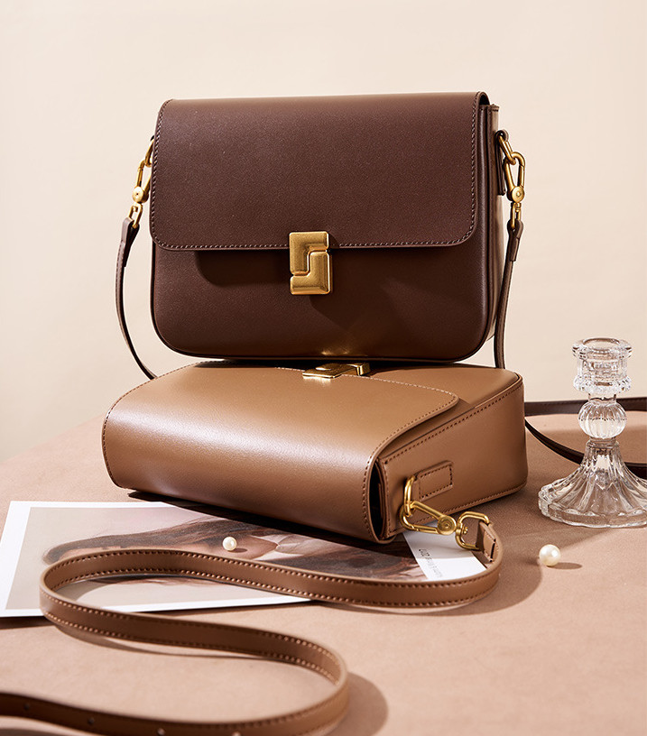 Компактная женская сумка из гладкой кожи с чёткой формой.