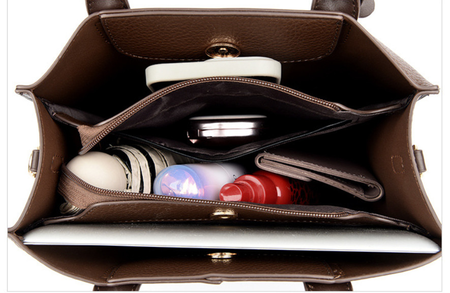 Внутри: 3  отделения, среднее из которых на молнии, крайние отделения закрываются на кнопку-магнит.