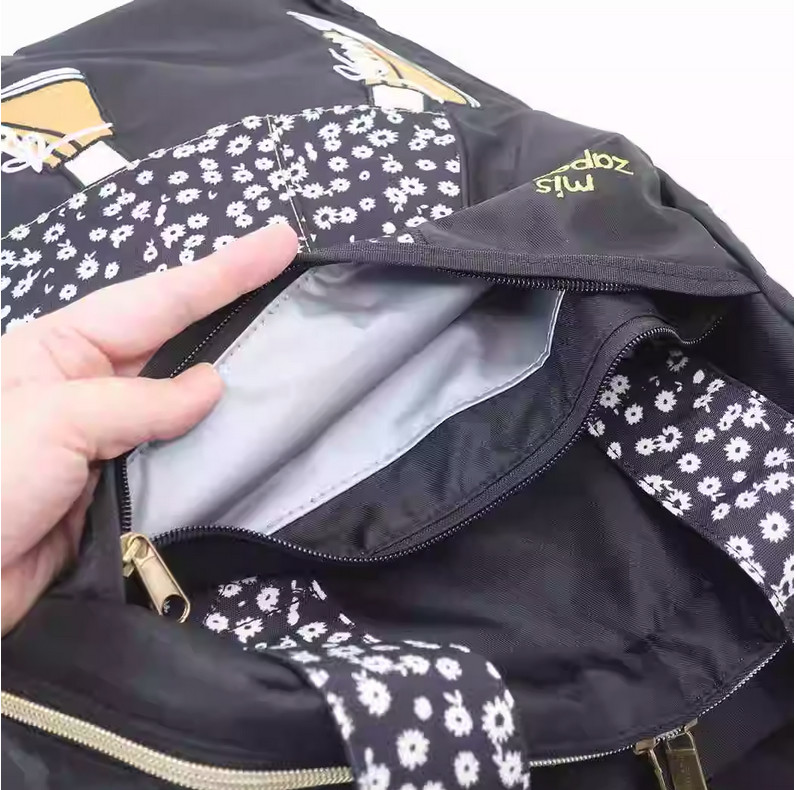 Внутри есть дополнительные карманы и отделения для мелочей, а также комплектуется ремешками для крепления рюкзака на детской коляске.