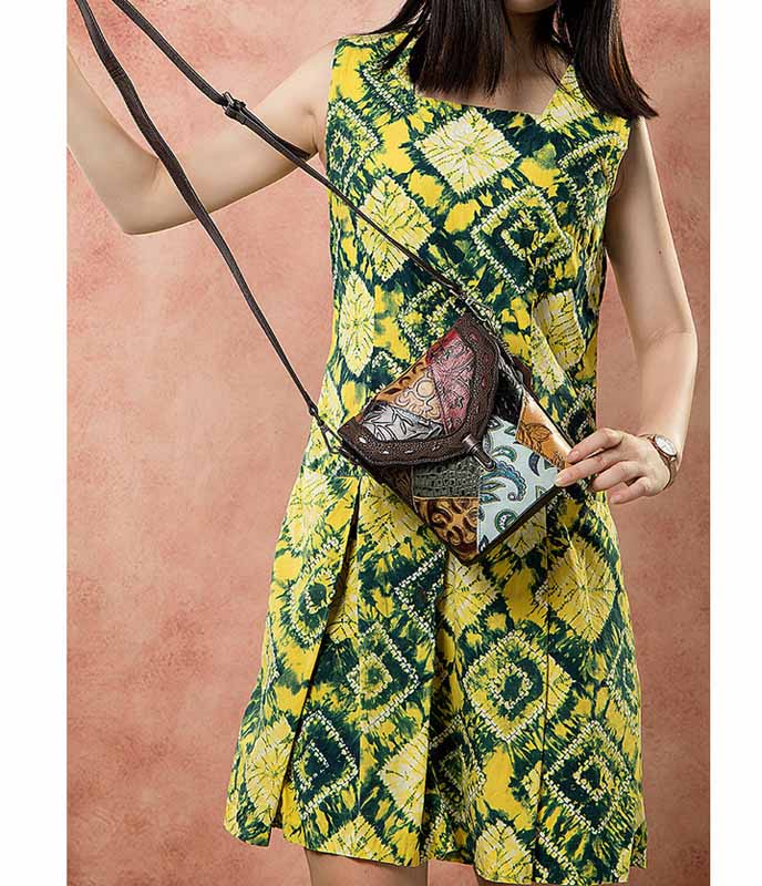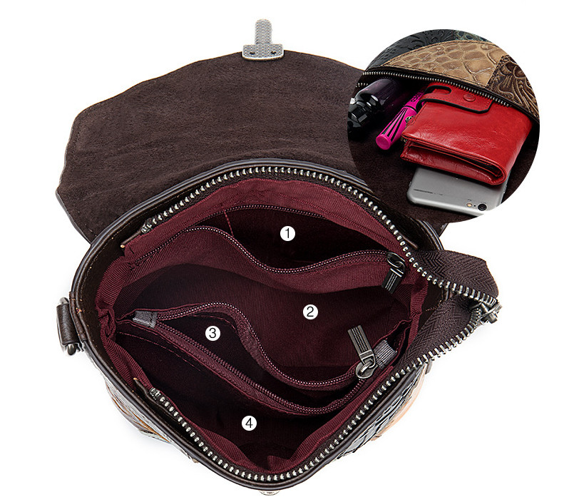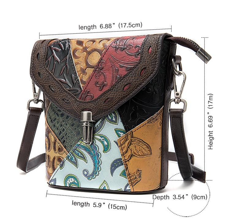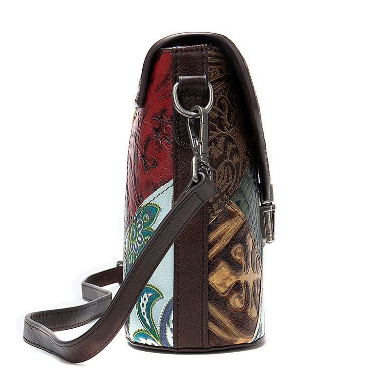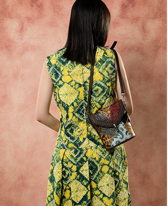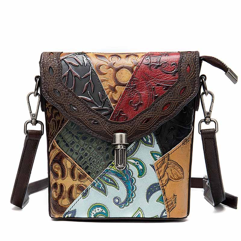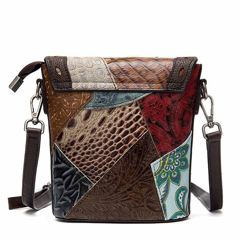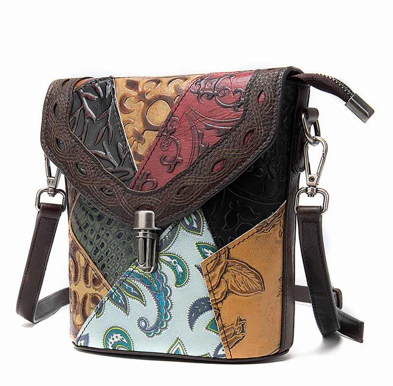 Сумка из натуральной кожи с тиснением, выполненная в стиле пэчворк.