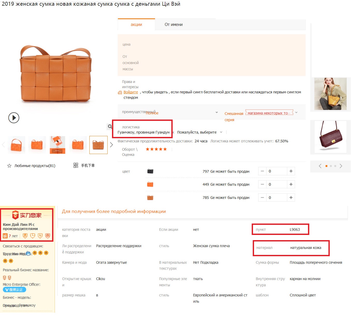 Материал : натуральная кожа ( спецификация фабрики см.фото)