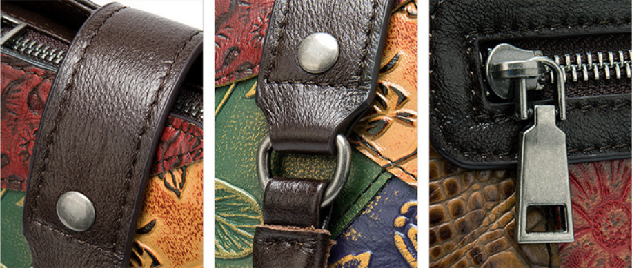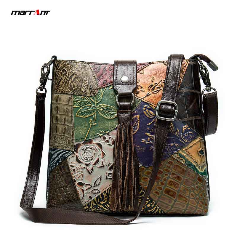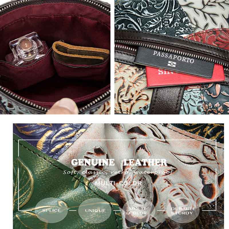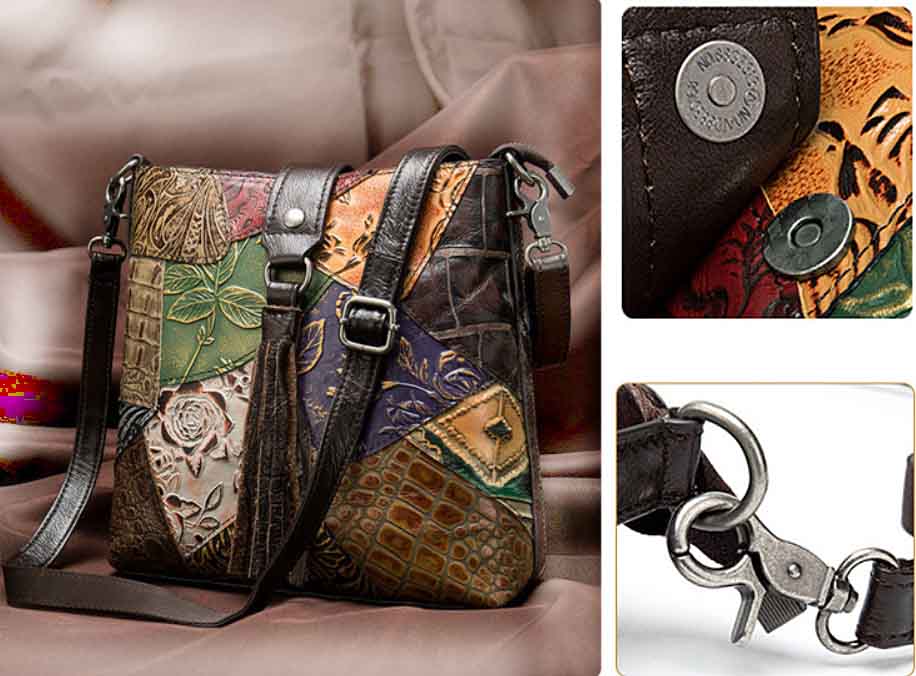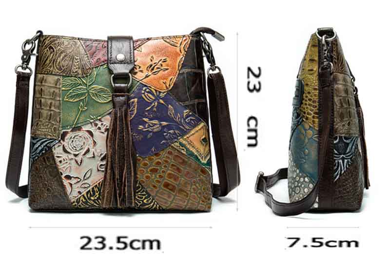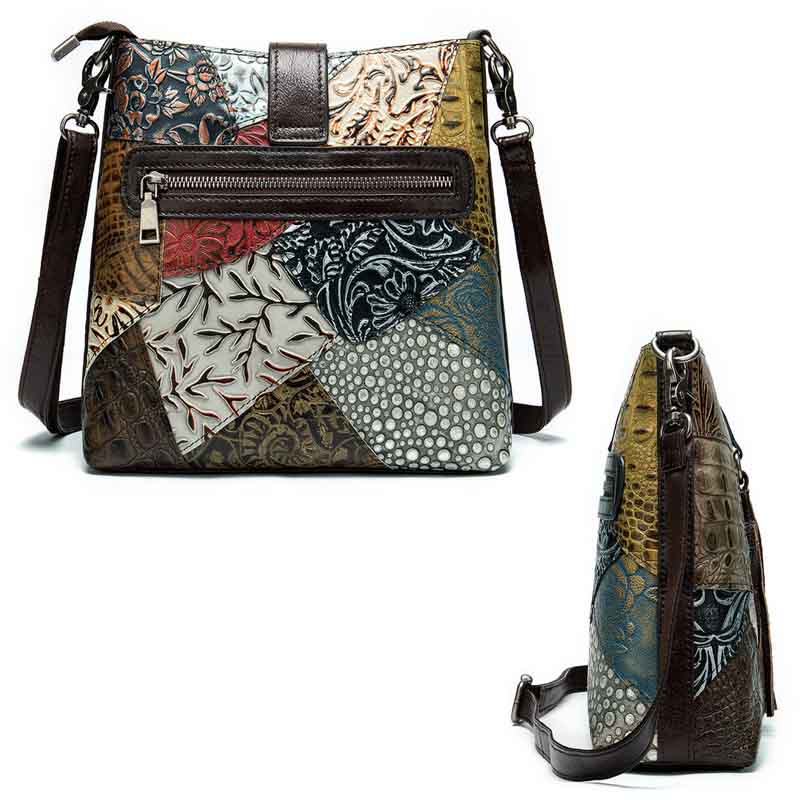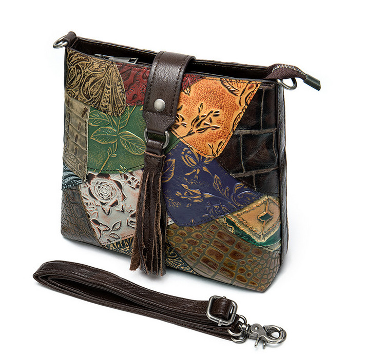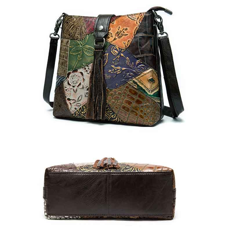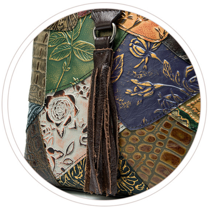 Сумка из натуральной кожи с тиснением, выполненная в стиле пэчворк.