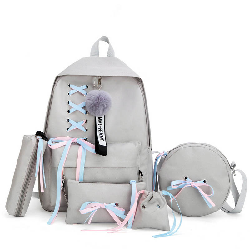 Рюкзак, круглая сумка, кошелек или косметичека, кошелек для мелочи и пенал для ручек.