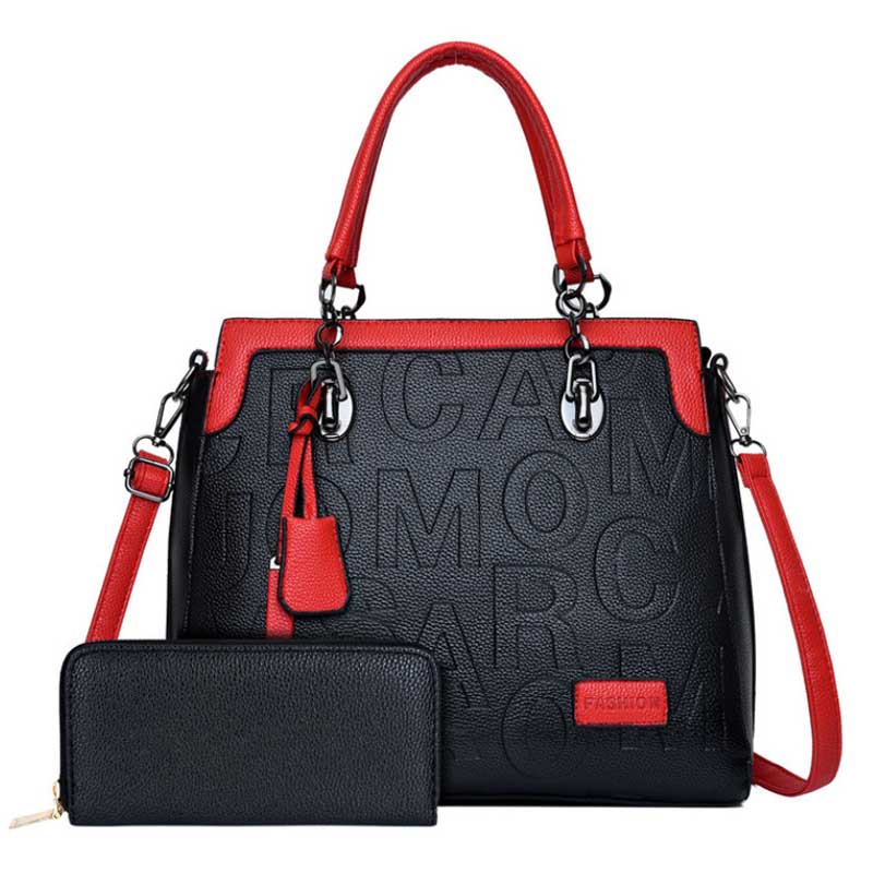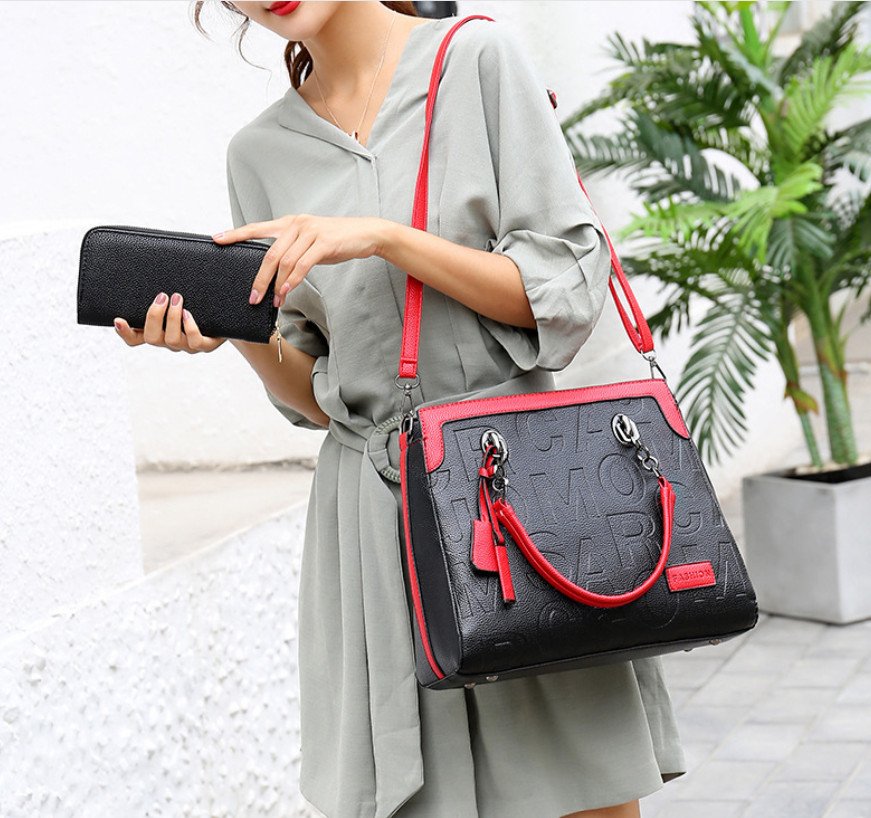 Модная сумка с тиснением и контрастной отделкой + кошелек.