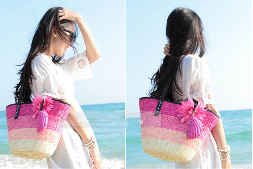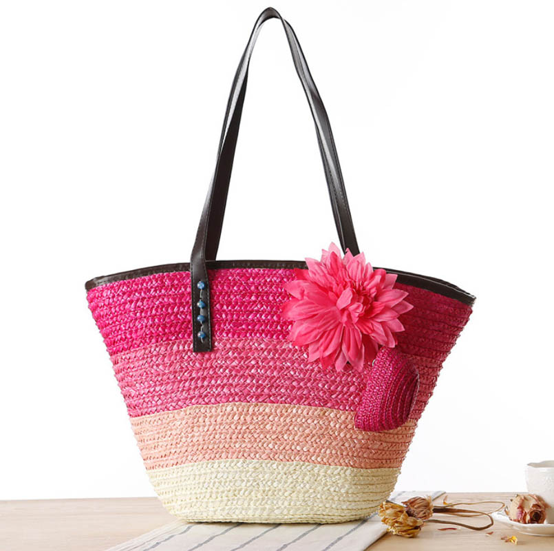 Яркая красивая соломенная сумка.