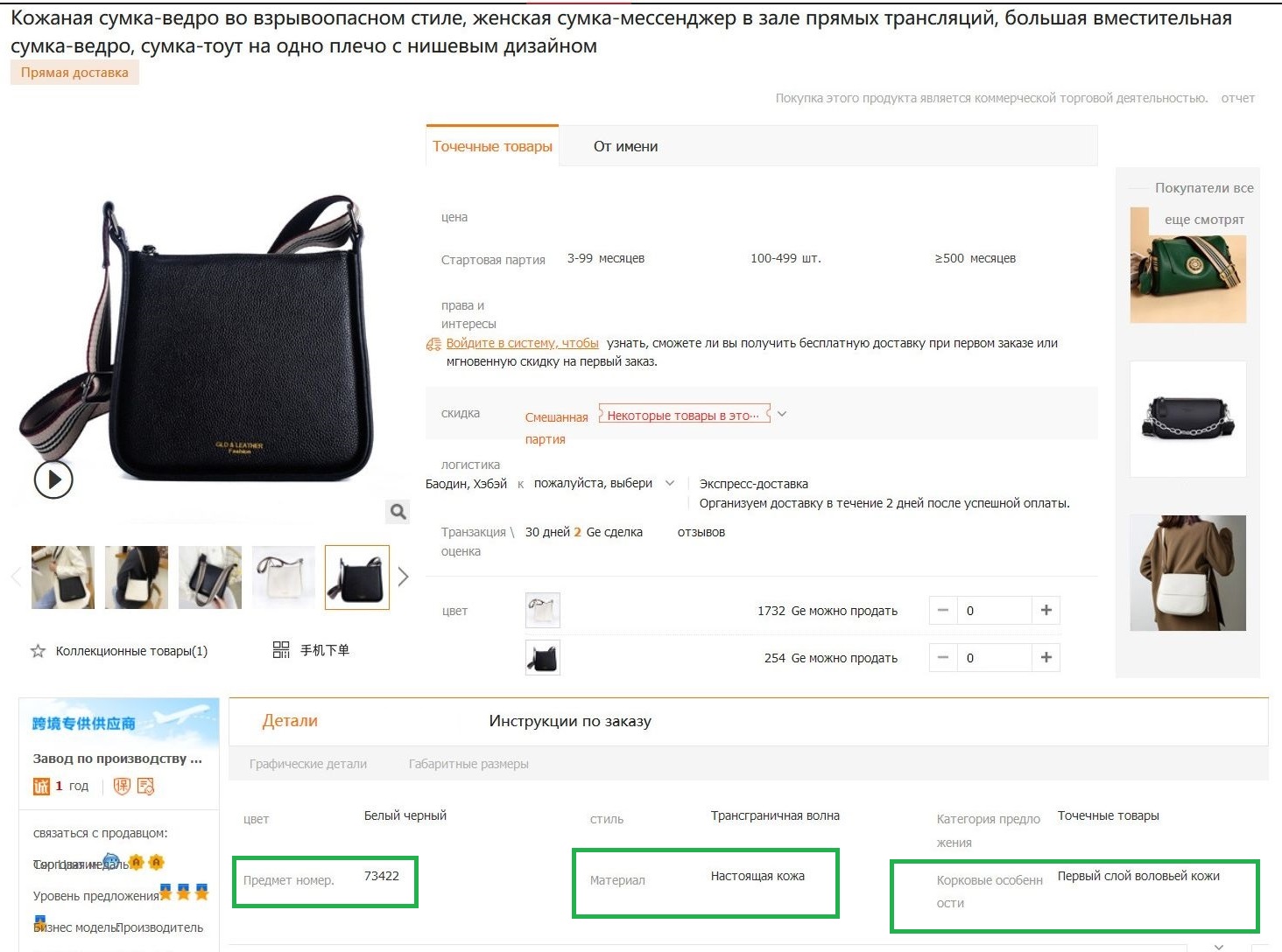 Материал: натуральная кожа ( первый слой )