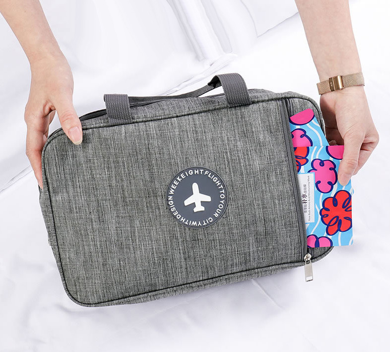 Внутри: 2 отделения, одно из которых водонепроницаемое для банных принадлежностей.