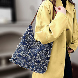 Джинсовая сумка с кожаной отделкой ( дно и ручки) Материал: джинсовая ткань с узорной выработкой + экокожа Размер: см.фото