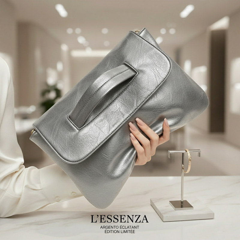 В комплекте есть съёмный длинный ремень, поэтому клатч можно носить как в руке, так и на плече.