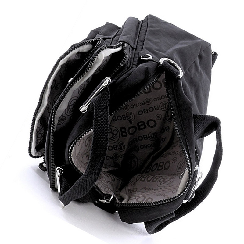 Женская сумка-рюкзак бренда "Bobo". Много отделений и доп. карманов - см.фото С обратной стороны: карман на молнии Длинный ремень в комплекте. Материал: сжатый нейлон ( легкий, особопрочный) Размер: см.фото