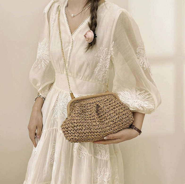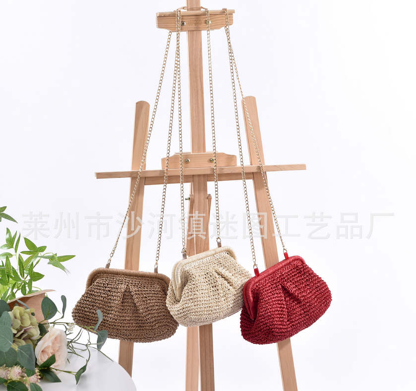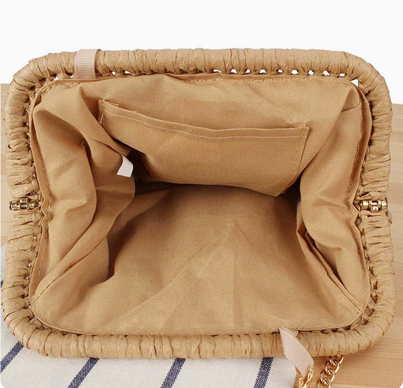 Плетеная соломенная сумка-клатч на цепочке.