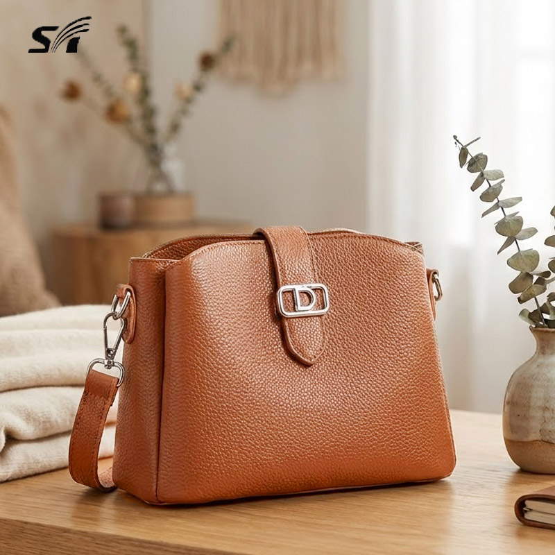 Женская кожаная сумка с 3-мя отделениями