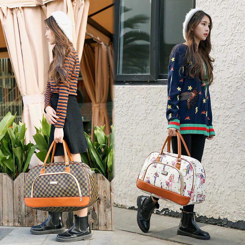 Стильная дорожная сумка из прочной экокожи с ярким декоративным принтом.