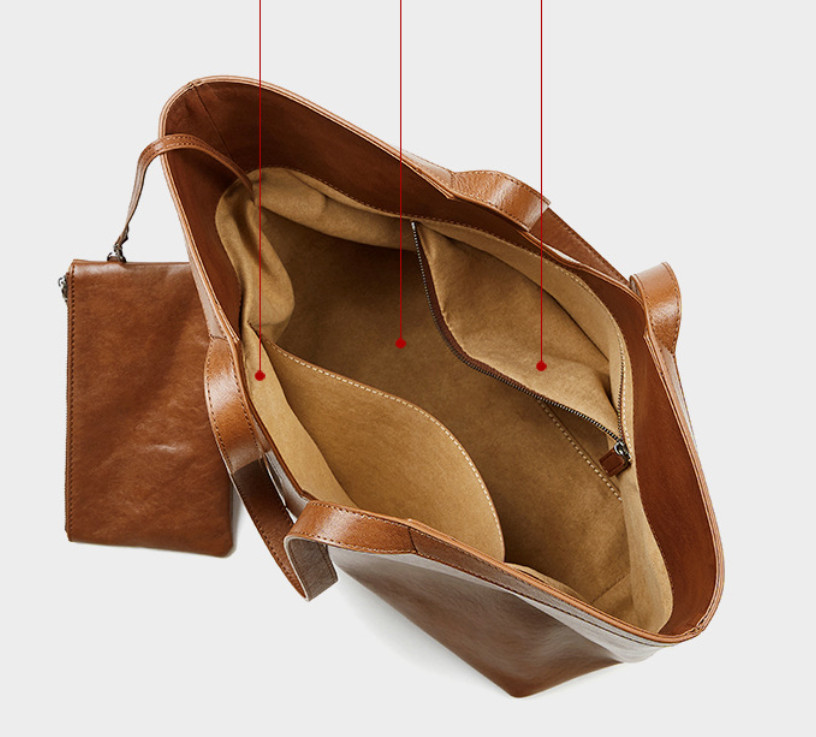 Вместительная кожаная женская сумка-тоут.